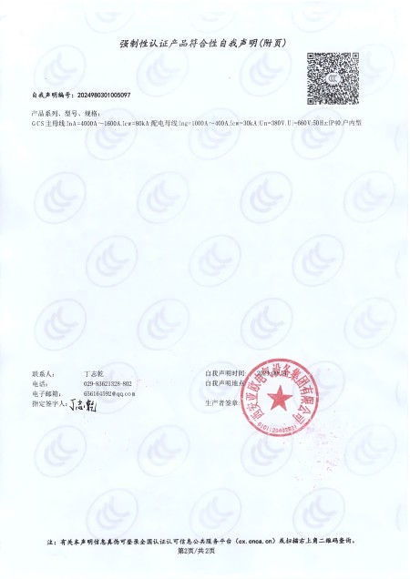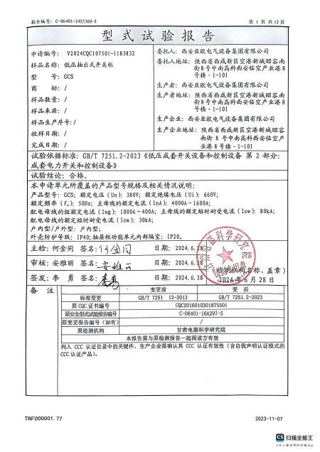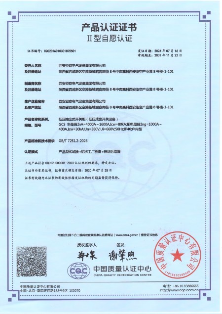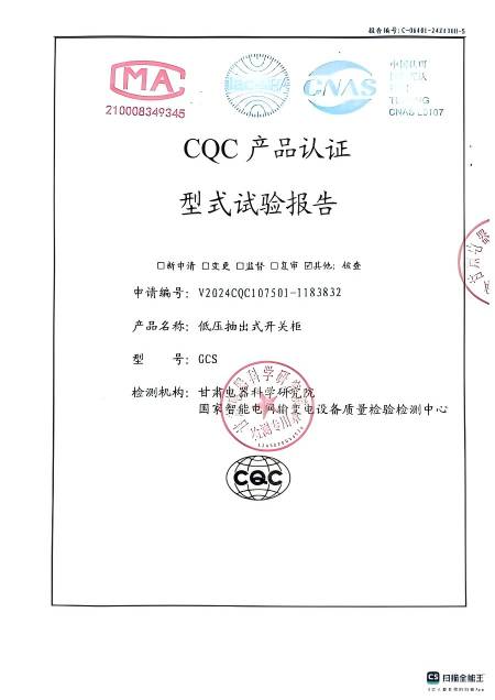 - 關于我們 - 資質榮譽 - 低壓抽出式開關柜(GCS)資質